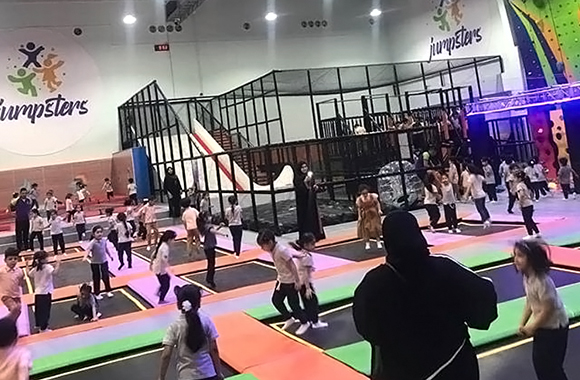 結合多種娛樂運動項目的體驗式室內運動公園,場館設有自由蹦床區、拓展蹦床區、扣籃蹦床區、蹦床體操館、Party room等,為多個年齡層次的人群提供了豐富多彩的蹦床運動體驗,同時也給公司團隊拓展以及生日主題活動舉辦提供了一個新穎另類的活動場所。