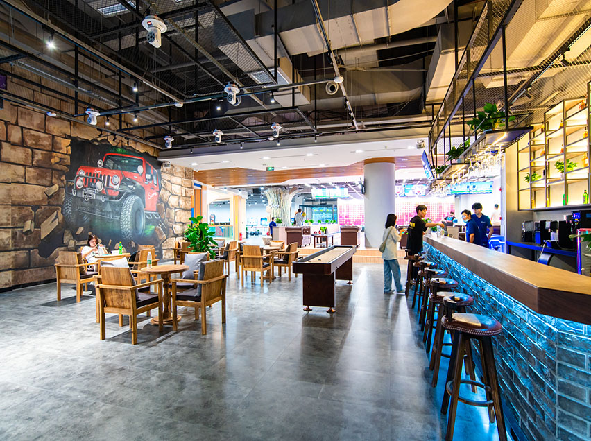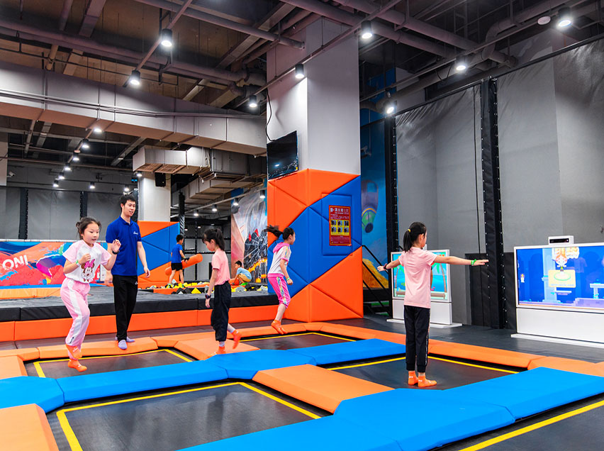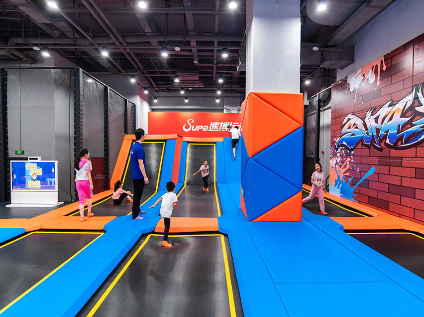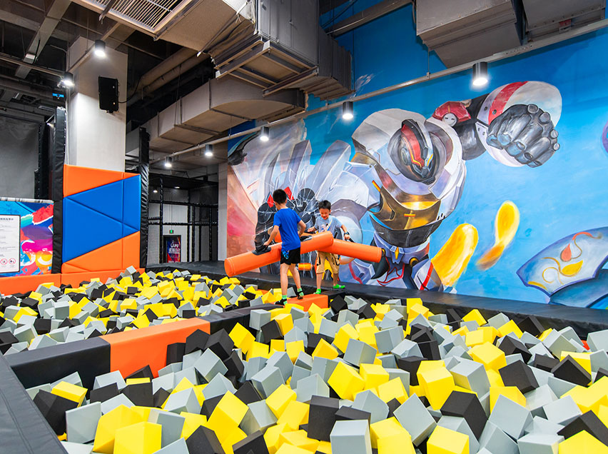 蹦床館主題包裝應對應大眾人群的喜好來量身設計才更能夠突出樂園的多元化屬性。裝修設計高大上的蹦床樂園一般會將多種形式的休閑、娛樂、餐飲空間集中置于一個較大的室內空間中,大廳通常采用大跨度玻璃屋蓋以使得室內陽光充足、綠樹水池曲徑通幽,使游客享受到到置身于大自然環境中的美妙感覺。