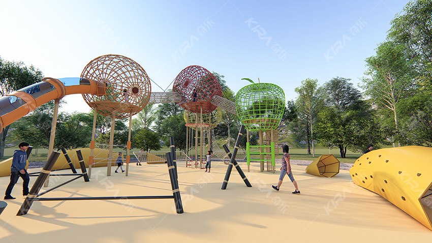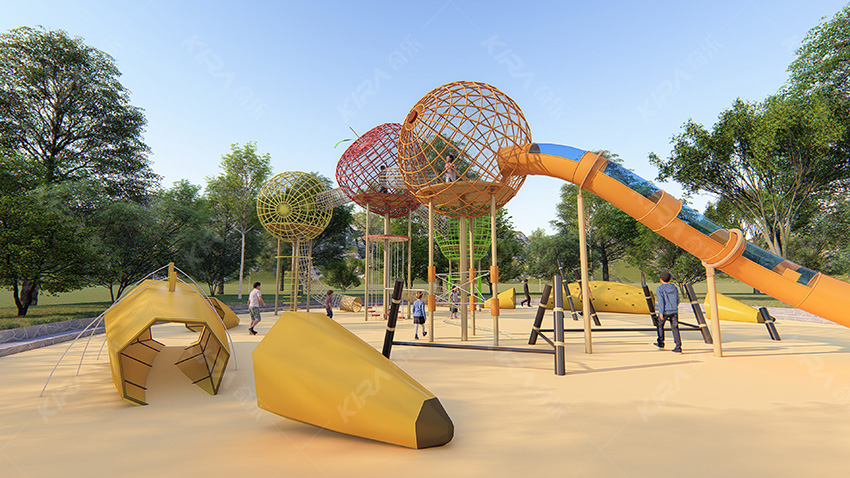 本項目適用于各種親子主題類的樂園,巧妙運用“熊貓”IP造型設計,集拓展、探險、滑道、飛索、蹦極、不銹鋼滑梯、攀巖、爬網等46種不同運動體驗的文化主題項目,結合“大灰熊”IP形象,融入相關設計元素,打造差異化的網紅IP主題性運動拓展營地綜合體。 在裝飾設計上采用竹葉和竹竿的綠色設計元素,以原生態、自然風格為基調,采用原木、繩網和不銹鋼等柔韌度好的生態材料。滿足大眾貼近自然、主題鮮明、寓教于樂的兒童素質訓練教育親子樂園的精神訴求。
