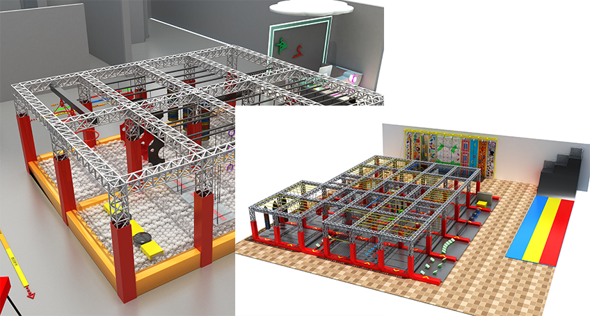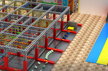 拓展支架:整體可拆裝、可移動,無現場焊接,鋼架體全部法蘭連接,設有2層斜梯,器材在整體上有足夠的強度,無明顯的擺動、永久變形及損壞現象,項目承載用鋼絲繩全部采用丙綸外層鋼絲繩,此繩具有鋼絲繩的安全強度還具有游樂器材的安全防護標準,采用當今世界最先進的鋼絲繩壓制金屬接頭工藝連接和靜音軌道,多向通行,增大載客量。